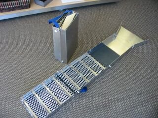 The Folding Backpack Sluice fits into a 5-gallon bucket or small backpack and is perfect for hiking into out of the way places. Sluice unfolds into a 50" long, 9" wide sluice and sets up quickly.